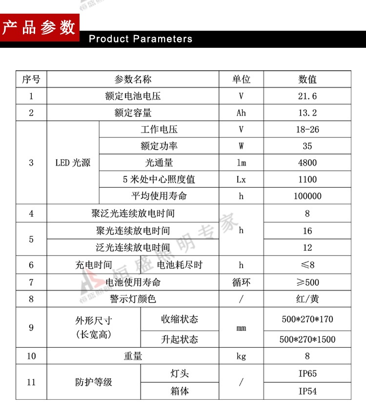 1、一燈多用,既可升起充當固定照明使用,也可以手提時作為探照燈使用,滿足不同客戶的照明需求。