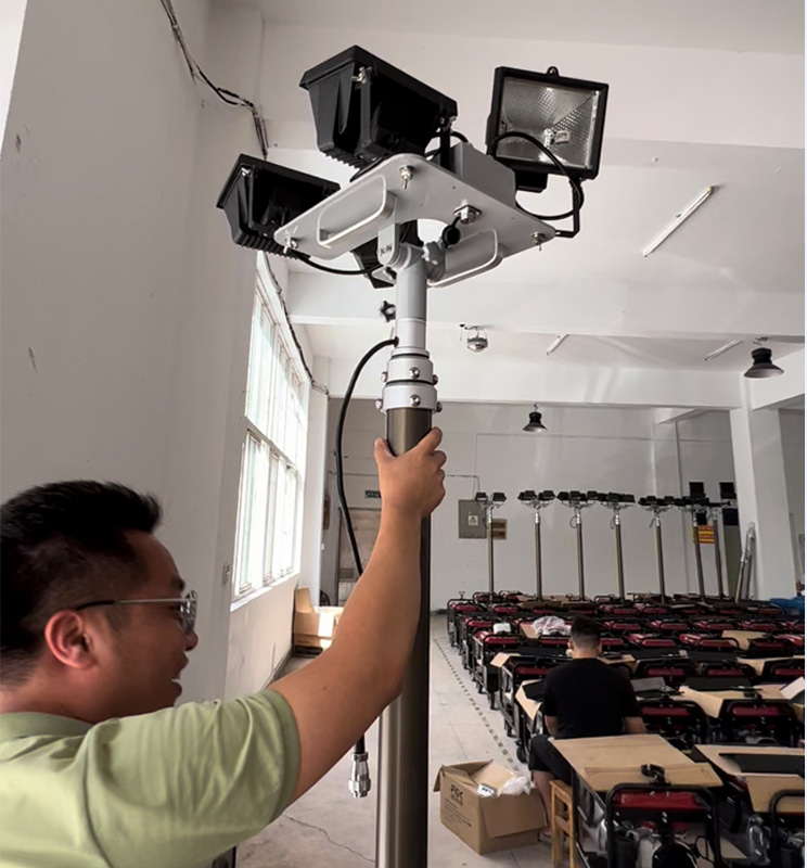本產品的標準配置不能滿足客戶的工作需要,我司可在燈盤的燈頭數量、功率、伸縮氣缸的升起高度及發電機的配備上按客戶要求做出調整,以滿足客戶的個性化需求。為提升應急處置能力,公司研發了多種用途、多種使用方式、多種照明場景的應急照明設備。手提式強光探照燈、輕便式強光搜索燈、充電式多功能移動照明平臺\便攜式升降工作燈。