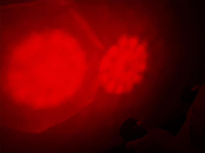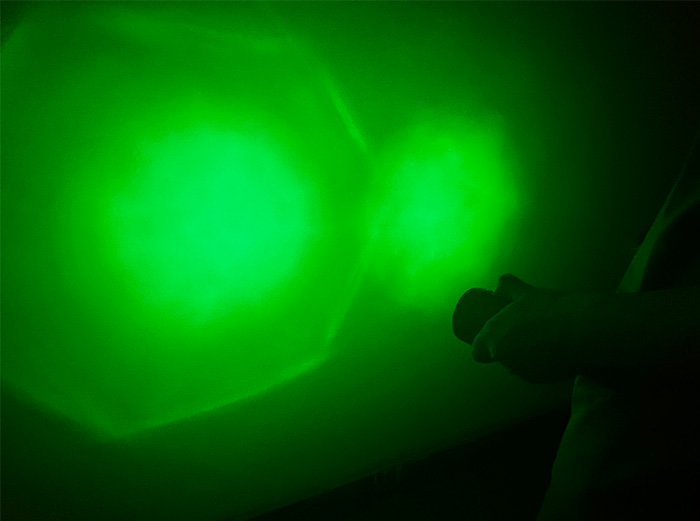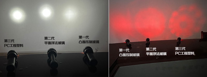 我們再來比對一下平面浮法玻璃鏡片和PC工程塑料鏡片照射效果(左邊是三代PC工程塑料鏡片 右邊是浮法玻璃鏡片)