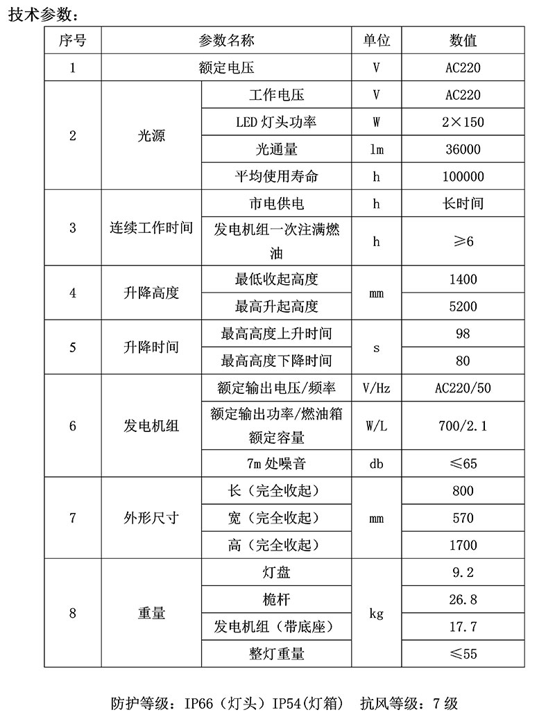 本產品的標準配置不能滿足客戶的工作需要,我司可在燈盤的燈頭功率、泛光或聚光類型及發電機的配備上按客戶要求做出調整,以滿足客戶的個性化需求。整體采用各種優質金屬材料制作,結構緊湊、性能穩定,具備可調節支撐支腳、水平儀水平校準功能,三角形支撐結構可以適用于任何復雜地形,燈頭防護等級為IP66,燈箱防護等級IP54,抗風等級達到7級,確保在各種惡劣環境和氣候條件下正常工作。