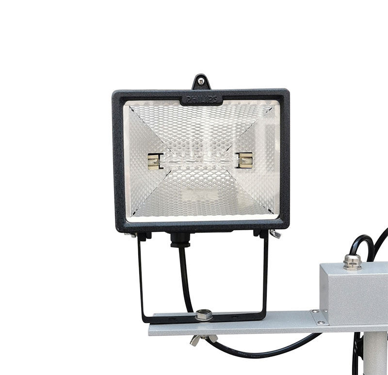 1.燈盤由2個500W飛利浦高效節能燈頭組成,可根據現場需要將每個燈頭單獨做上下、左右大角度調節旋轉實現360°全方位照明;整體照明遠近兼顧,照明亮度高、范圍大,飛利浦燈泡壽命長。