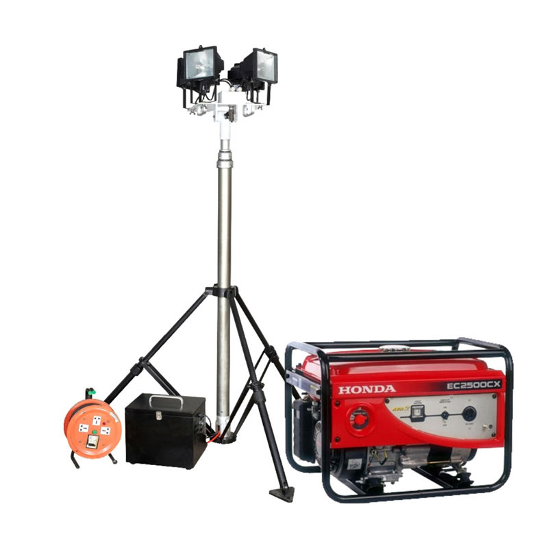 4. 可接通220V市電長(zhǎng)時(shí)間照明,也可直接使用發(fā)電機(jī)組供電;采用2KW發(fā)電機(jī)組供電一次注滿燃油連續(xù)工作時(shí)間可達(dá)13小時(shí)。
