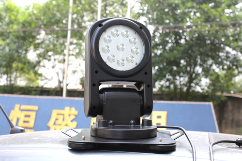 車載遙探探照燈也叫車載遙控搜索燈,遙控探照燈,車載移動照明燈,全方位車載燈,車載燈等名稱。除恒盛照明企業的WJ828系列,840系列型號外,目前市面上通用的型號有:YFW6211|YFW6211/HK|GAD508|CHT3168|YFW6211A/HK1|YFW6211A/HK2|ZW3320|YJ2353|CFA182150。車載遙控探照特點是可以借助車輛本身的電源取電,供電,也可以方便的安裝,磁力吸附在車頂,使燈具在更高的角度將燈光投射到工作面,擴大了工作面。
