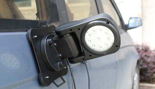 隨著道路網的四通八達,汽車的普及,在交通執法,公安出警,電網檢修等夜間公務活動中,因為時效的關系,都會以汽車作為首選出行。到達公務現在進行工作活動時,由于車燈設計的時候是正面直射路面,給不同方位工作要求帶來局限,否則就得隨車帶一套工作燈具。隨車攜帶現場照明工作燈的調拔,裝車及現場啟有等事項比較繁雜,影響效率,此時車載遙控探照應時而生。