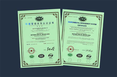 日前,恒盛照明企業通過了GB/T24001-2004 idt ISO14001:2004即環境管理體系認證。它要求恒盛照明企業對產品設計、生產、使用、報廢和回收全過程中影響環境的因素加以控制。ISO14000基于“環境方針”應體現生命周期思想的思路。用以評價產品在每個生產階段對環境影響的大小,使組織恒盛照明企業能夠加以分析改進。