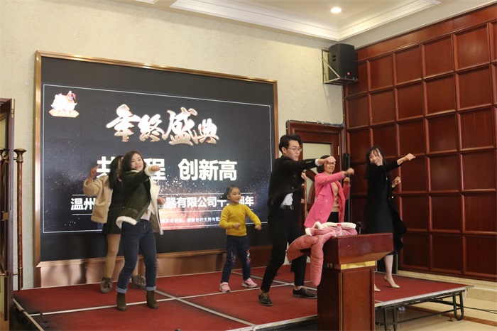 大會結束后,6點整喜迎分歲宴,歡喜迎新年!由市場部及采購部員工擔綱主持。晚宴開始前,由表演者:詹貽旺 黃四嬌 姚小敏 饒秋華 覃思慧 滿益倩帶來開場舞蹈“抓錢兔子舞”,為晚宴拉開了序幕。彭斌總經理、詹百根副總經理、車、沖床車間劉茂軍、注塑車間劉慶為我們的表演者送上鴻運當頭獎。并為晚宴送上了第一杯祝酒。