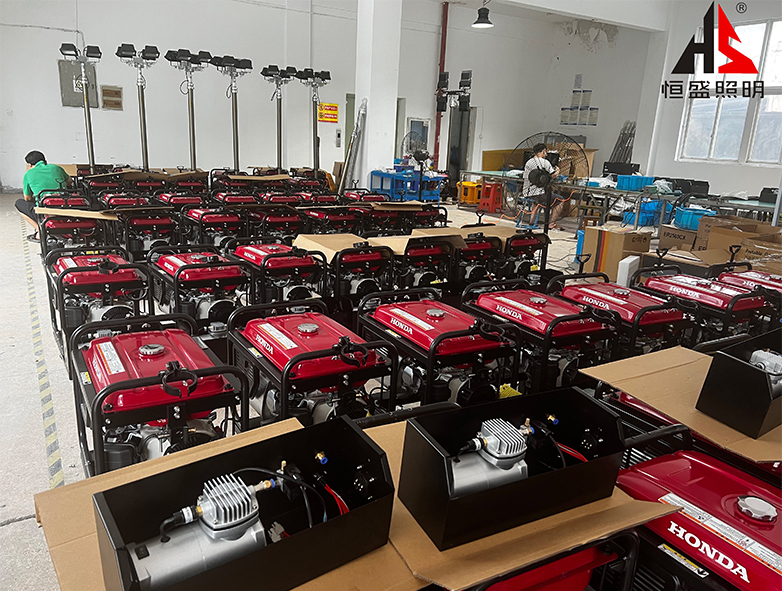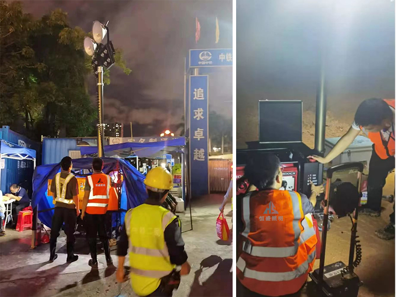 移動照明燈組又叫全方位自動升降泛光工作燈、多功能升降照明燈塔或者自發(fā)電式移動照明燈組等,采用模塊化設計,由高速移動底盤、靜音機組、高強度升降桿和照明燈組成,高效能LED兩支或四支燈頭交錯照射,360度全景照明,可高達幾萬流明的強光,推車式發(fā)電機組、超長使用時間;專用防護箱可防止水分、粉塵、溫度及撞擊等給儀器設備帶來的破壞,功能強大的應急、救援、照明產品。下面恒盛照明帶大家詳細了解升降式移動照明燈組。
